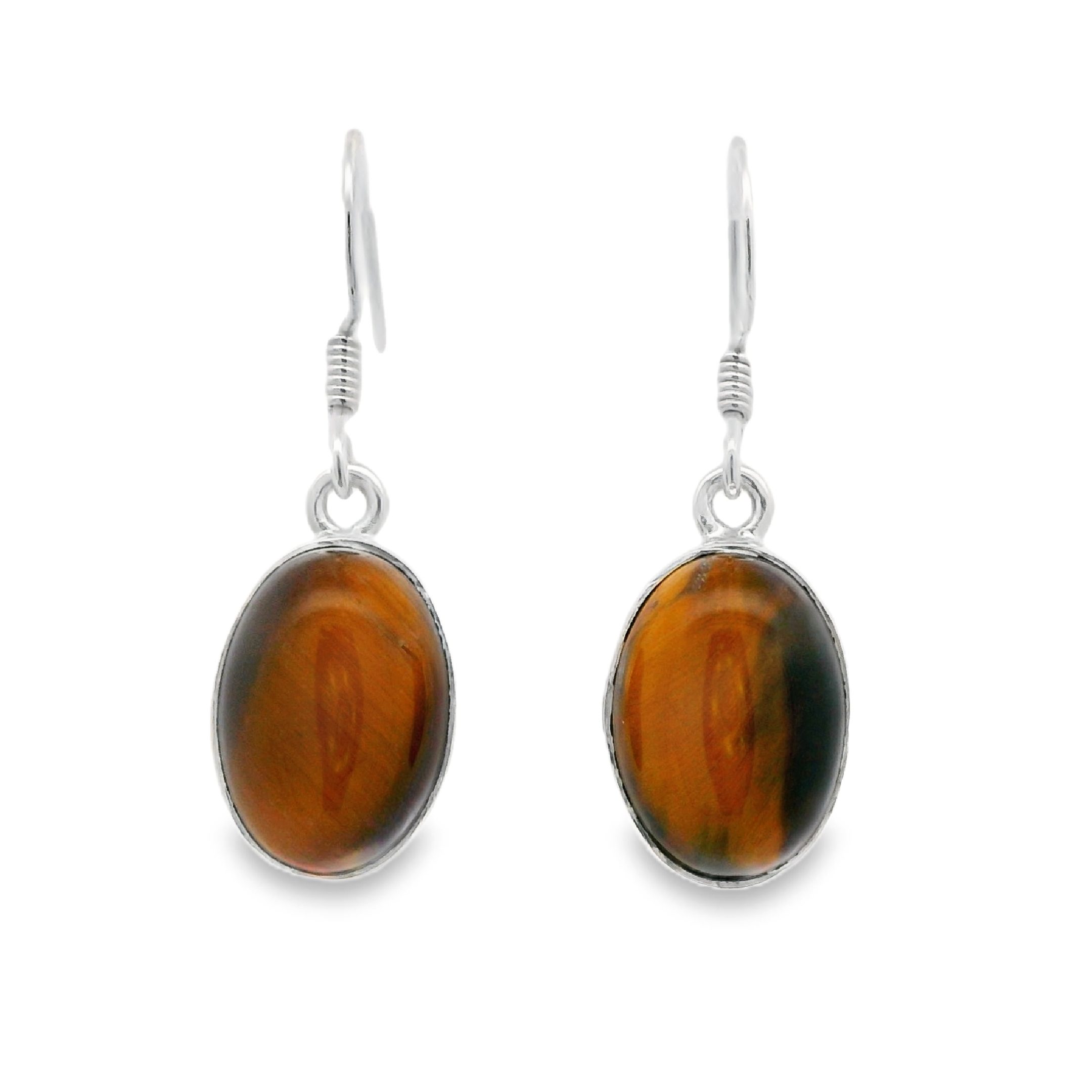 Tigers Eye Golden Oval Drop Earrings 4.4g